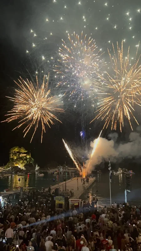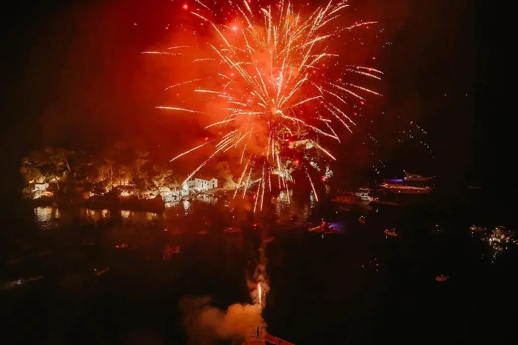 On the evening of the 14th of August, a popular festival takes place on the island of Panagia, located in front of the port of Parga, where people are transported there by boats.